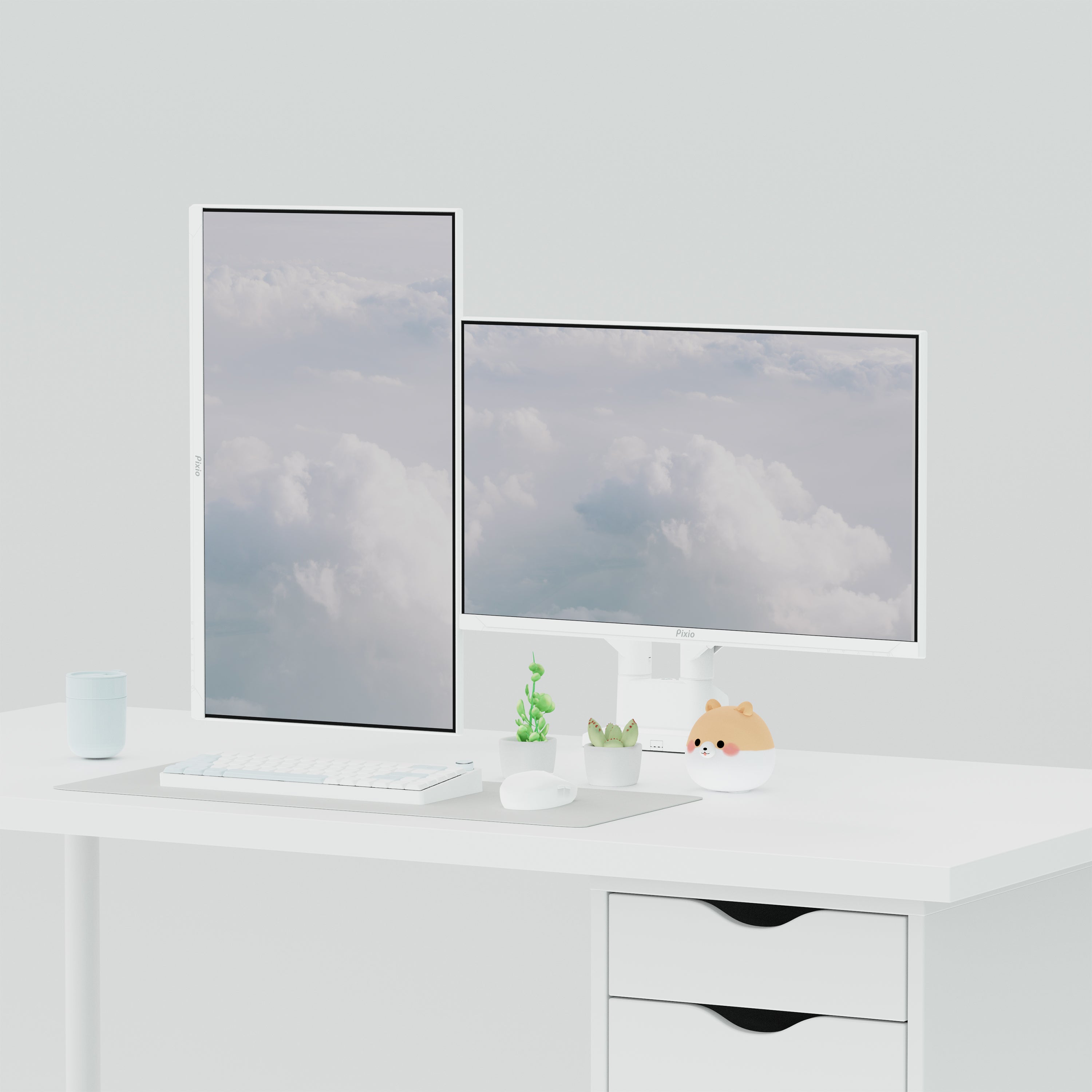 Introducing the PS1D Wave Premium Dual Monitor Stand – the ultimate in workspace efficiency! It's the perfect solution for a clutter-free, customizable setup with 180º rotation, top-side installation, integrated cable management, detachable VESA plate, and built-in spring tension. Upgrade your workspace today!